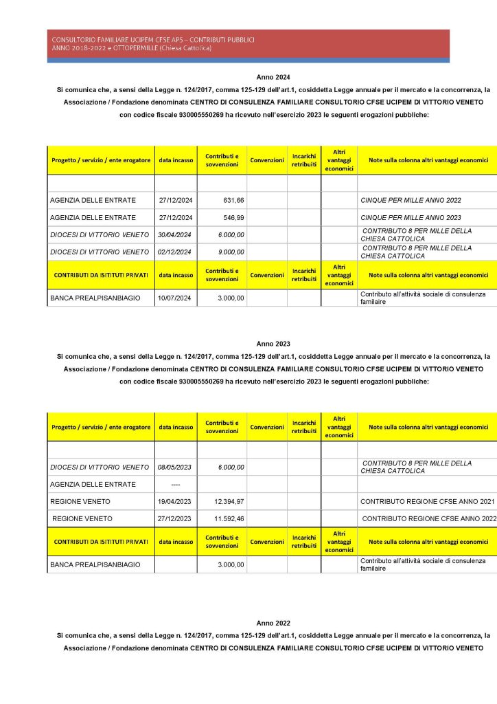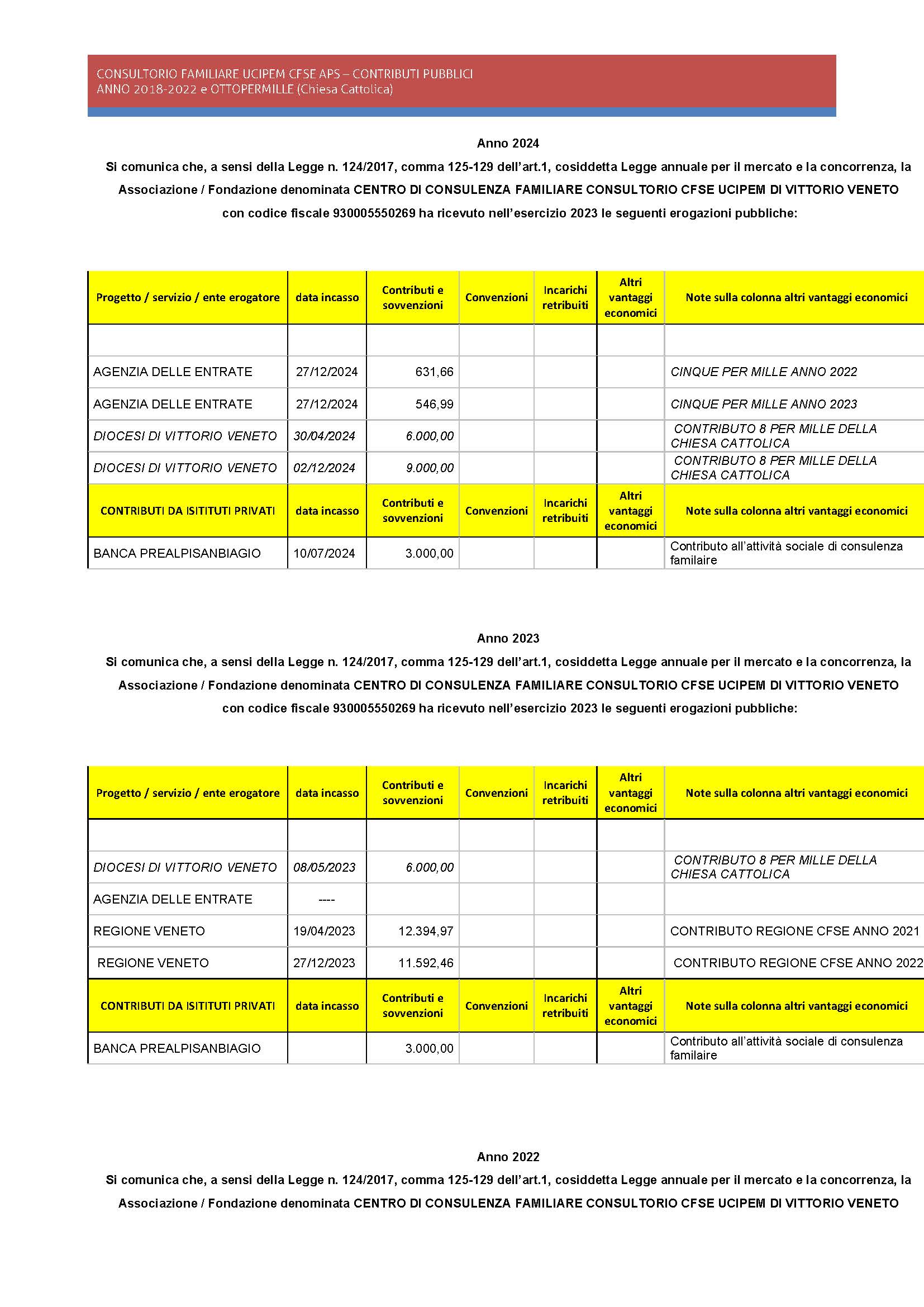 Contributi da Enti Pubblici Anno 2024 (pubblicazione del 20.02.2025)